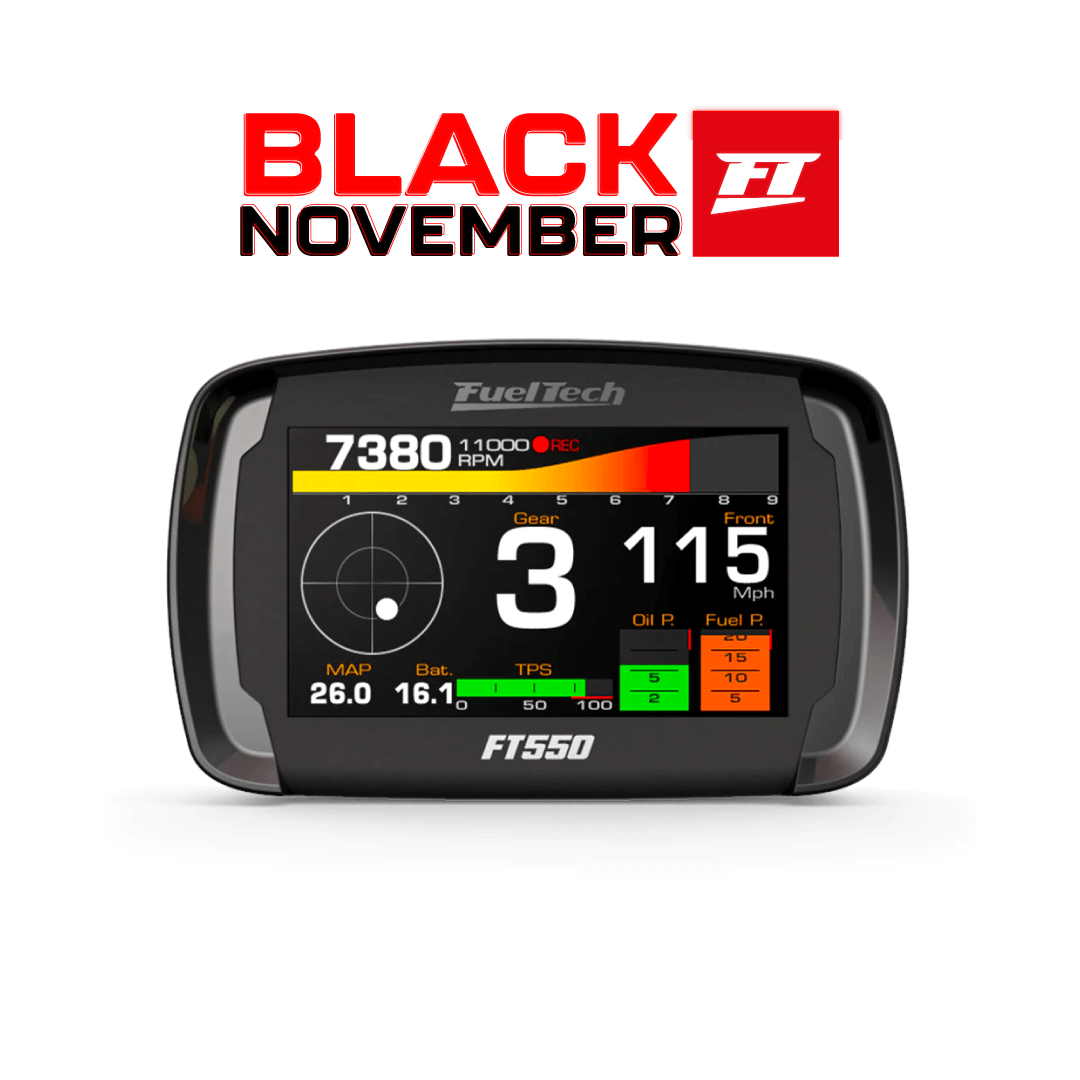 The FuelTech FT550 is the perfect aftermarket ECU for projects that require more features, including GearController (power-shifts), built-in accelerometer (G-meter) and gyroscope; In addition to all PowerFT ECU line features such as sequential injection and ignition, O2 closed loop, active traction control, integrated BoostController, internal datalogger, progressive and PRO-Nitrous controls, odometers, electronic throttle control, inclinometer, drag racing features and more.